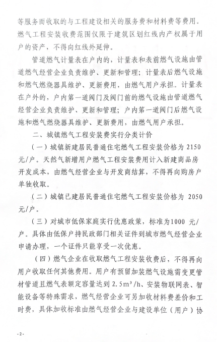 安慶市發(fā)展改革委關(guān)于規(guī)范我市天然氣新增用戶燃?xì)夤こ贪惭b收費(fèi)標(biāo)準(zhǔn)的通知(2019)