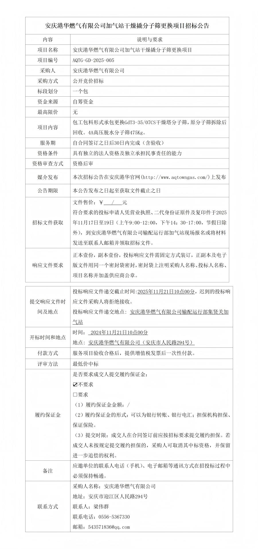 安慶港華燃?xì)庥邢薰炯託庹靖稍锴朔肿雍Y更換項(xiàng)目招標(biāo)公告